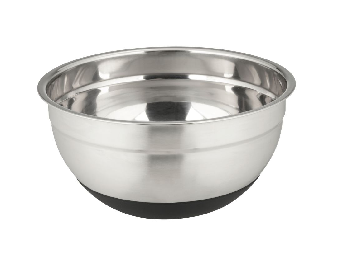 Funktional hat die Edelstahlschüssel ebenfalls so einiges zu bieten. Der Silikonboden ist rutschsicher, so steht die Schüssel während des Transportes auf dem Tablett sowie auf der Arbeitsplatte und dem Tisch jederzeit rutschfest an der gewünschten Stelle. Sobald die Rührschüssel leer ist, kann sie bequem in der Spülmaschine gereinigt werden. Ein weiteres Highlight des schwarzen, langlebigen Silikonbodens ist die Möglichkeit, die Schüsseln geräuschlos ineinander zu stellen. Denn die elegante Schüssel mit 1,7 Litern Volumen ist auch in den Größen 0,6 Liter und 4 Liter erhältlich. So können Sie die kleineren Varianten in die Größeren stellen und die Schalen platzsparend verstauen.
