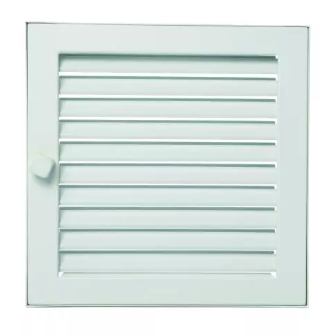 Temperaturbeständige, einbrennlackierte Oberfläche 60 mm breiter verzinkter Einbaurahmen. Zeitloses modernes Design, Massiver Stellgriff, doppelte Lamellenführung.