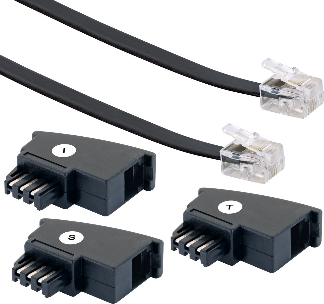 - Lieferumfang: 1x Telefon Anschlusskabel, 1x TAE (F) Stecker Telekom. 1x TAE (F) Stecker Siemens, 1x TAE (F) Stecker international