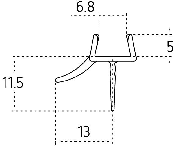 Produktinformationen "Upmann Wasserabweisprofil, 5 mm SH/ 8 mm Glas, 11,5 mm Lippe"
