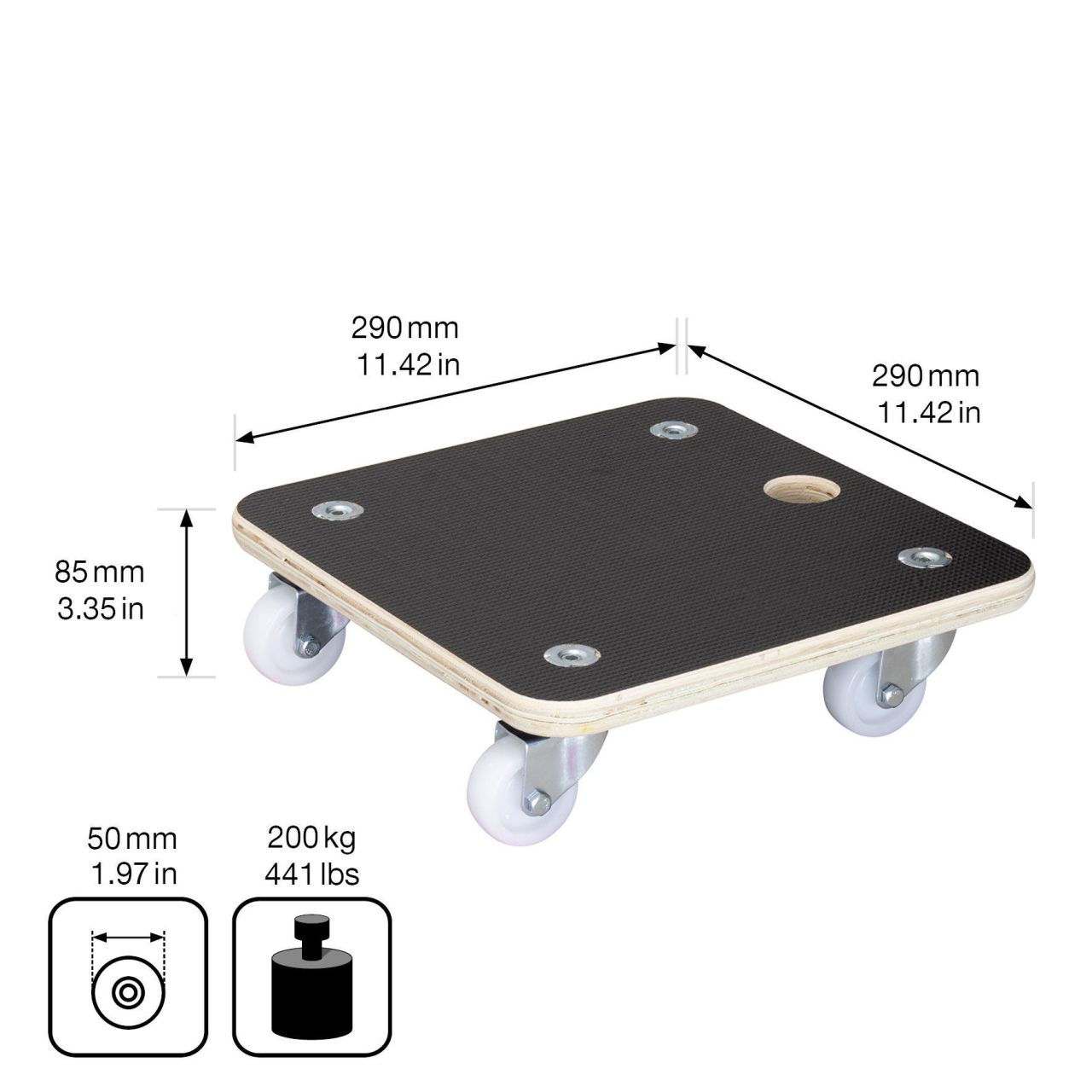 - Tragflächengröße 290 x 290 mm, Höhe 85 mm, Tragkraft 200 kg