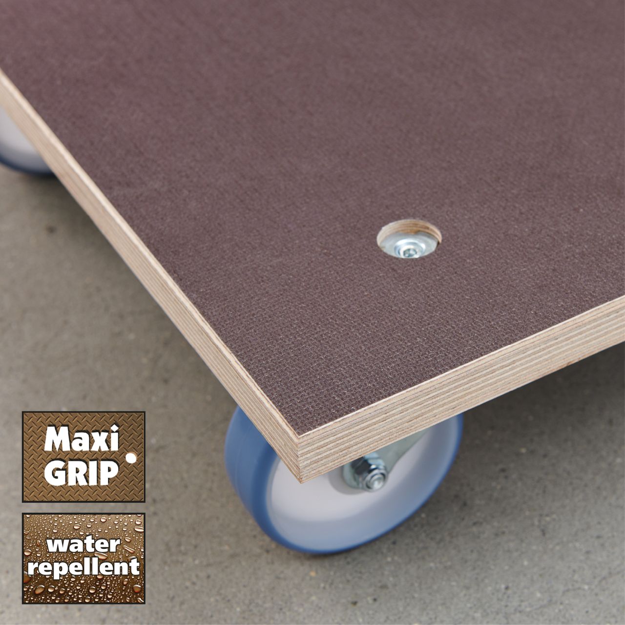 - Ladefläche aus äußerst formstabiler Multiplexplatte 24 mm aus nachhaltiger Forstwirtschaft, mit rutschfester MaxiGRIP-Spezialbeschichtung, (Anti-Rutsch Filmsiebdruck), braun