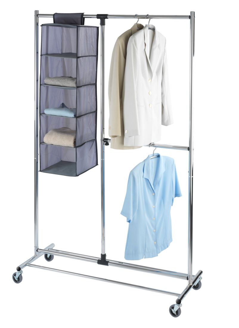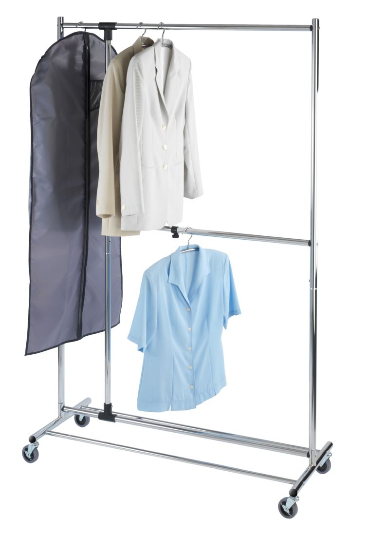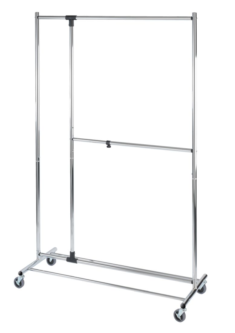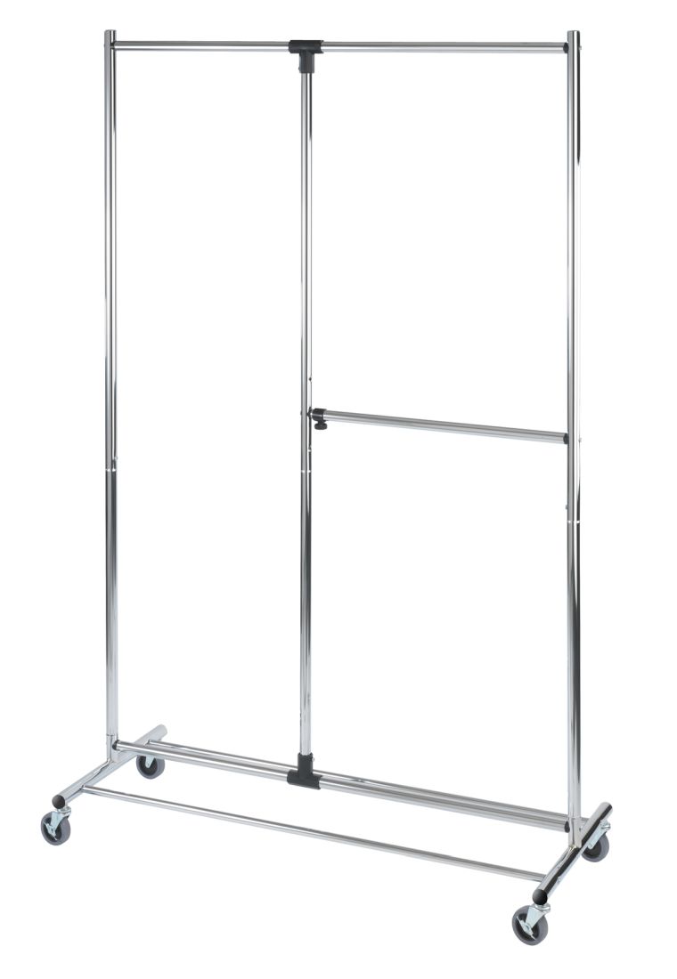 - Praktischer Kleiderständer zum Aufbewahren, Lüften und Transportieren von Kleidung. Mit 4 großen stabilen Rollen zum leichten Fortbewegen. Mit 2 Feststellbremsen. Mittlere Querstange in 3 Höhen montierbar. Mit innen seitlich stufenlos verschiebbarer Stange für längere Kleidungsstücke und Kleidersäcke.